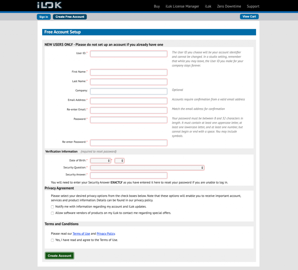 Navigate to ilok.com and create a free user profile. The username you choose will become your iLok ID. You will provide this ID to plugin developers when checking out on their websites.